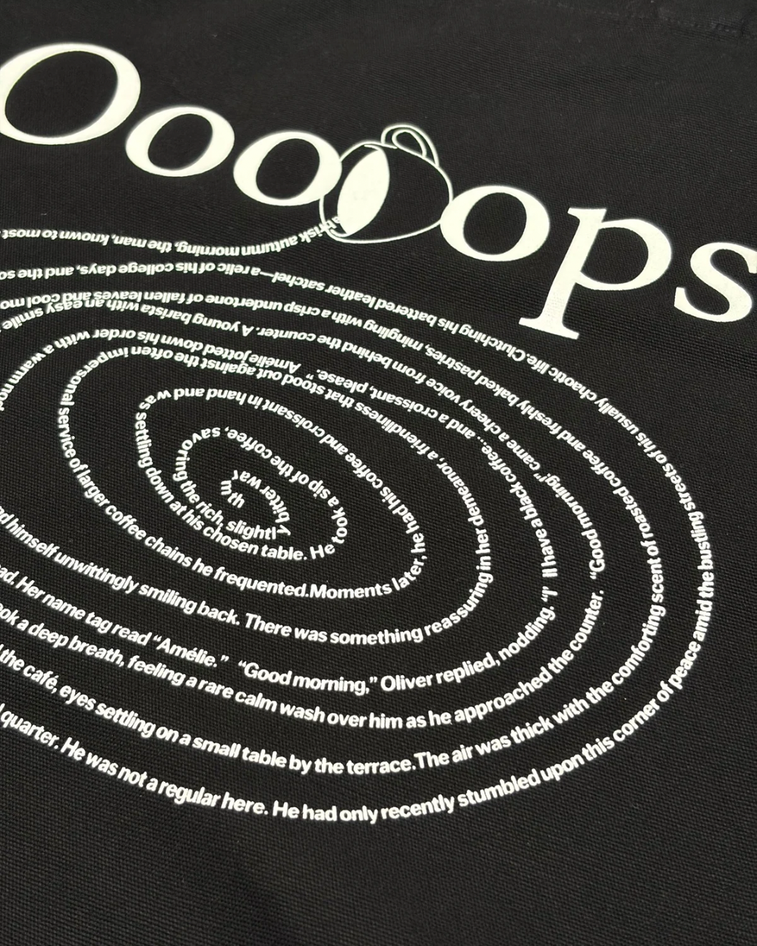 コットン100%のトートバッグに”コーヒーをこぼしている”グラフィックを施しています。