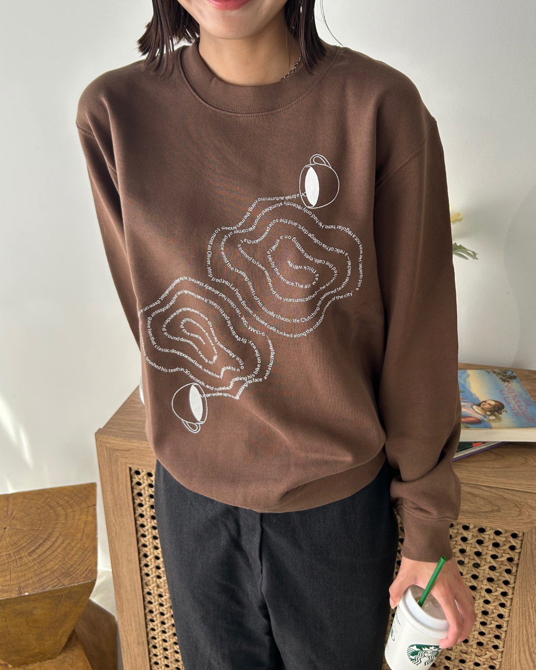 10oz , コットン100%のスウェットに”2杯のコーヒーがこぼれている”グラフィックを施しています。