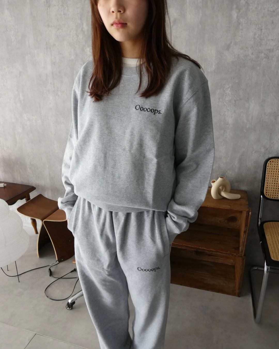 10oz , コットン100%のスウェットパンツに”Ooooops.”のワンポイント刺繍を施しております。