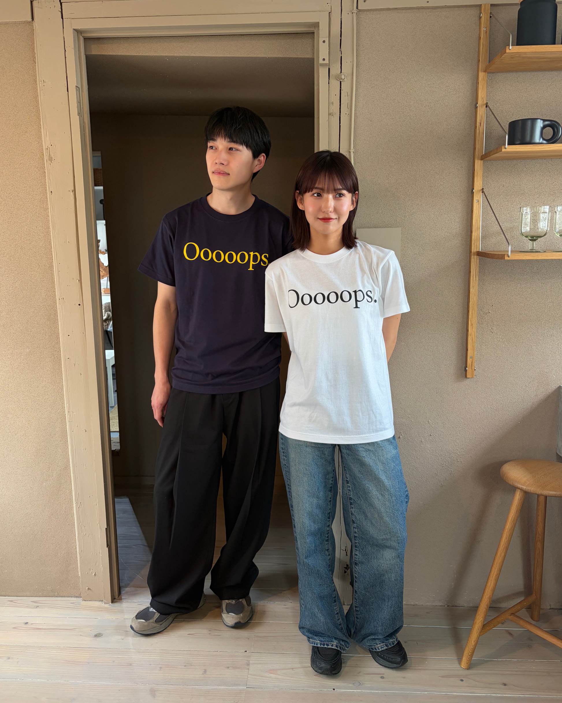 5.6oz , コットン100%のTシャツに”Ooooops.”シルクプリントを施しております。